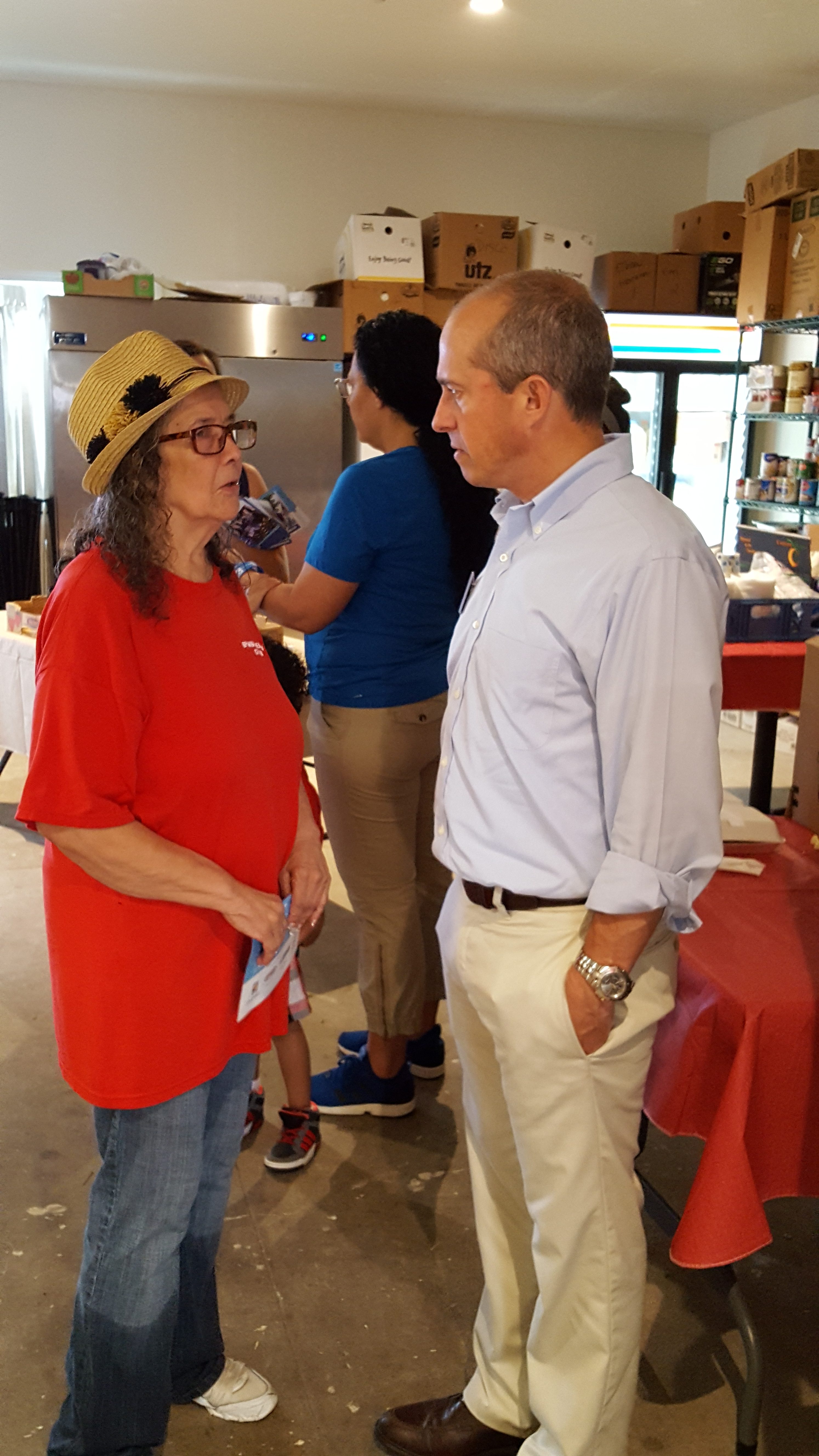 Needy Latimer, in red, describing our Cocina programs to Candidate Jay Gonzalez and staff and guests. Irene Hernandez, of Active Life Day Health in blue!
