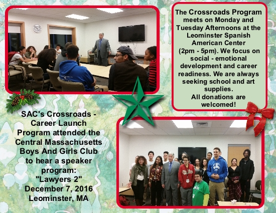 SAC Afterschool Program called “Crossroads” at the Spanish-American Center has been running for several years for students’ after-school enrichment. The focus, currrently, is on preparation for the work world or for higher education.