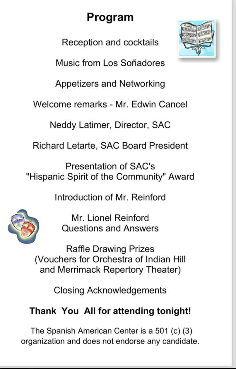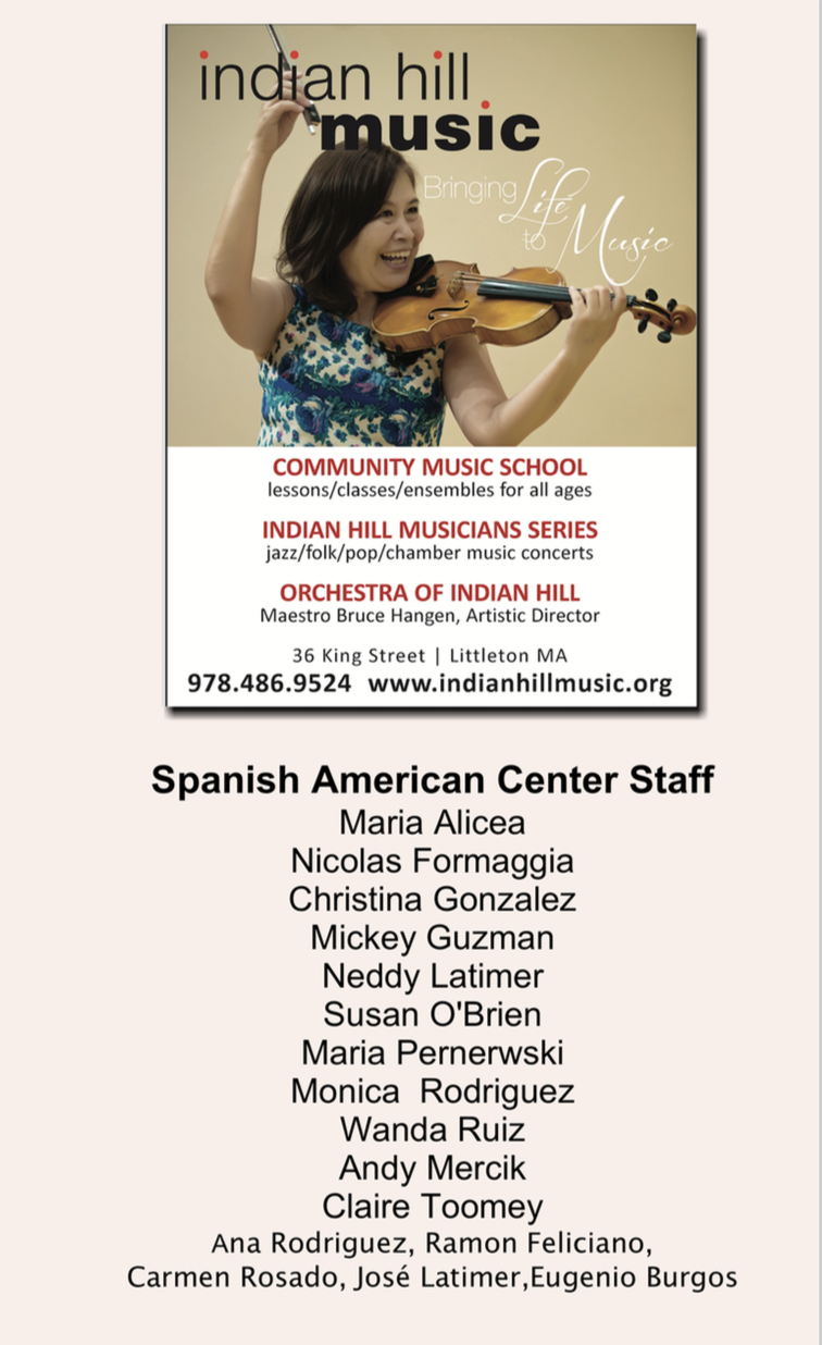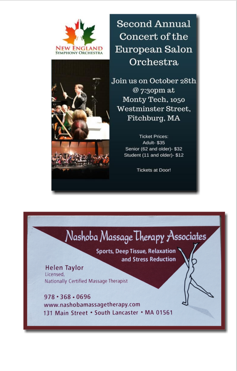 Door Prize Donors: Ticket vouchers to Indian Hill Symphony Orchestra, Littleton, MA, and to The Merrimack Repertory Theater, Lowell, MA.