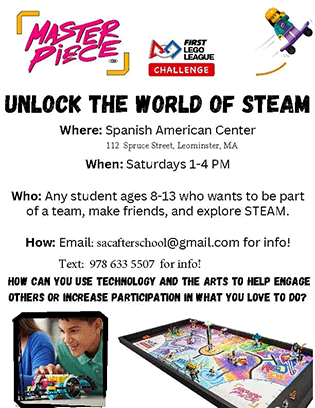 If you haven’t been to the Spanish-American Center at 112 Spruce St., you should stop by. A home converted to office space, a community center and kitchen, the center serves Leominster’s 15,000 Spanish residents with every possible activity and meets every need. Programs include an information and referral service, ESL and civic classes, peer leadership training, a food program through the homeless and community food pantry, a legal clinic, elderly outreach through their Senior Advocate Program, battered women and children counseling and homelessness referral. And that’s just at the center!